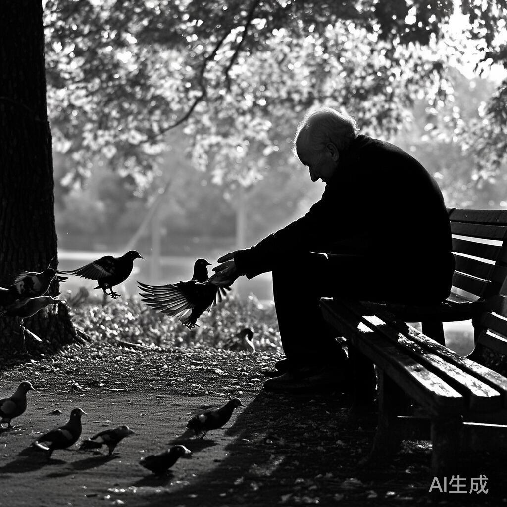 这一幕背后,有着丰富的人生阅历。在许多文化中,鸽子被视为和平与希望的象征。老人或许曾经历过战争或者动荡的岁月,现在却选择在安静的晨光中,用一小把面包屑去交流、去传递一种平和的信息。他的动作是那么轻柔,似乎每一块食物都承载着他对过去某个美好时光的怀念。